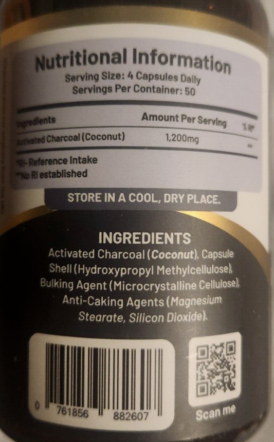 Activated Charcoal High Potency 900mg 200 Caps by Vitamins Because