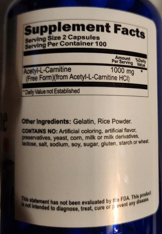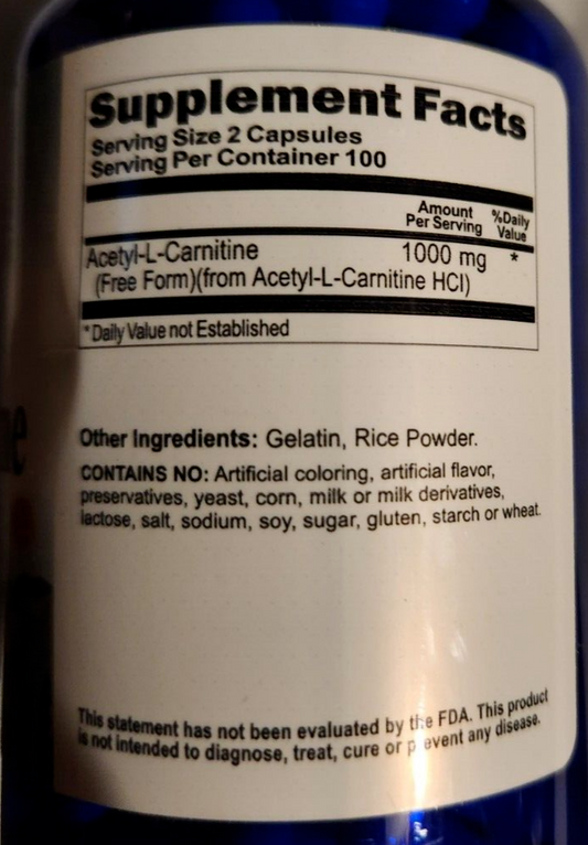 Acetyl L-Carnitine 1000mg 200 Caps by Vitamins Because Your Worth it